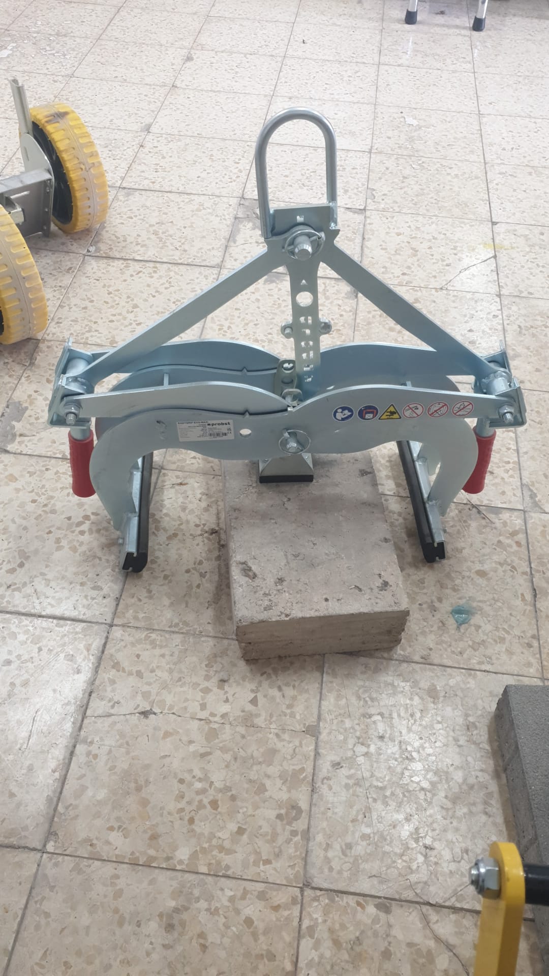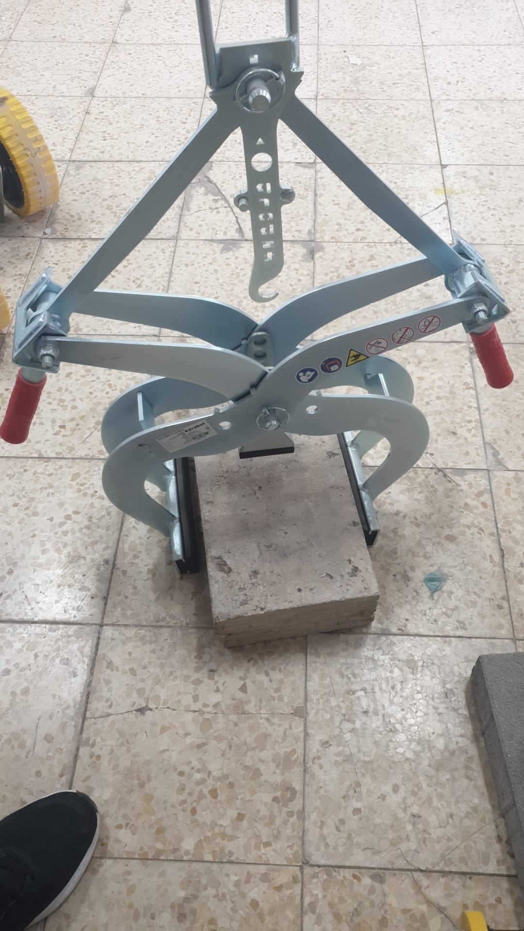 חבק להרמת אבנים, קטן וקל משקל אך חזק במיוחד! בעל אחיזה מכאנית המתאימה לטיפול באלמנטים מבטון מקבילי ומישורי כגון אבני גבול, לוחות, מדרגות וכדומה.
